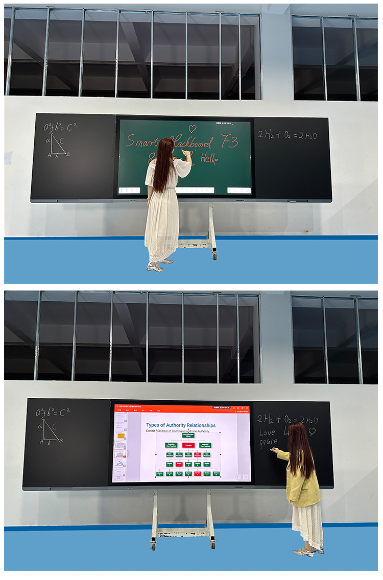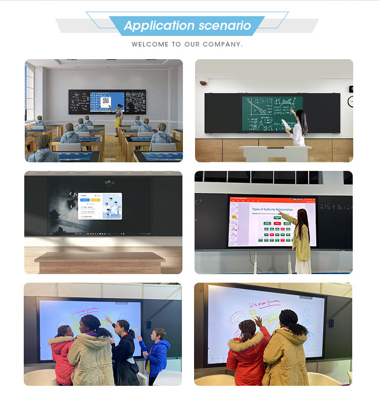 We are not just a hardware manufacturer — we offer complete, customized solutions for real classrooms and business spaces. Deployed in 100+ schools across China Tailored for various teaching scenarios from elementary to high school Remote technical support: 1-on-1 engineer video assistance, manuals & video tutorials Compatible with both Android & Windows systems Smooth user experience with easy setup for teachers and teams Multi-language support: English, French, Spanish, Arabic – and more on request Customizable teaching software available upon request We don’t just sell you a screen — we help you build a solution. Looking to customize your education or meeting environment? Let’s talk The company has successfully developed the world's first 98-inch smart blackboard and the world's first 110-inch and 115-inch interactive products. It is the hidden champion in the industry for ultra-large products such as 110-inch and 115-inch ones. The company has obtained ISO9001, 1…