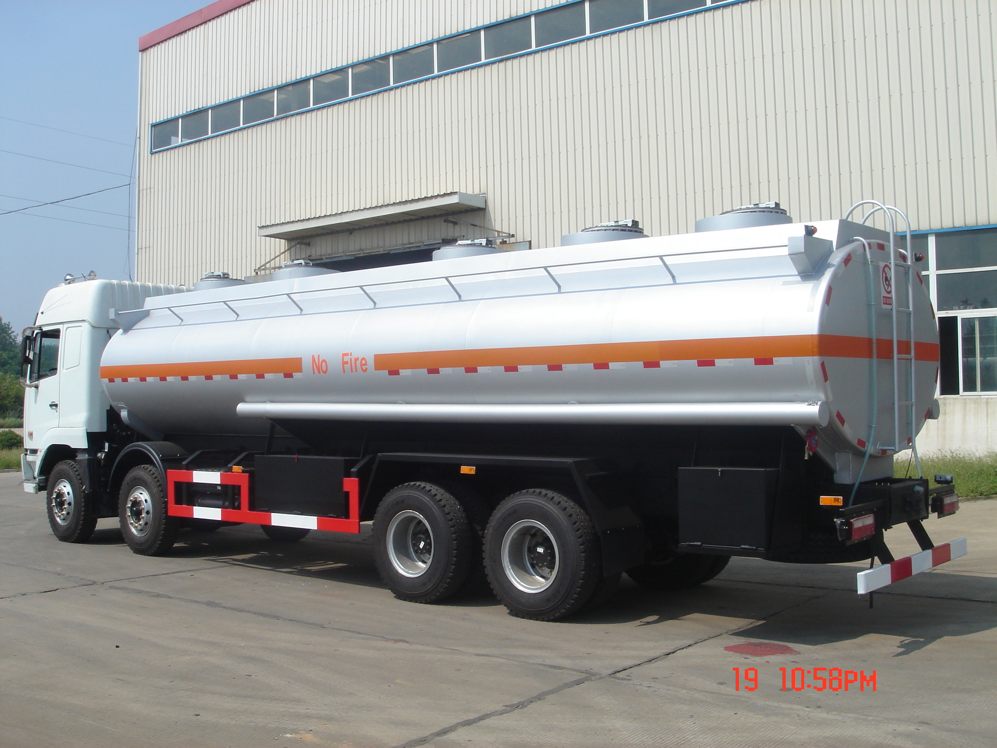 Industrial - Grade Flammable Liquid Transport Truck 1. Product Introduction The Silver - Orange Warning Oil Transport Tanker is a professional equipment focusing on the safe transportation of flammable oil. It adopts a coating design with a silver - gray body and orange warning stripes, which has both visual recognition and safety warning functions. Equipped with a large - capacity single - compartment tank and a heavy - duty multi - wheel chassis, it can efficiently transport flammable oils such as gasoline and diesel. It is widely used in gas station supply, industrial fuel distribution, dangerous goods logistics and other fields, and is a core equipment to ensure the safe and efficient operation of the flammable oil supply chain. 2. Product Features Silver - Orange Warning Coating Adopts a professional coating combining silver - gray and orange, which strictly follows the identification specifications for flammable liquid transport vehicles. The orange warning stripes can quickly…
