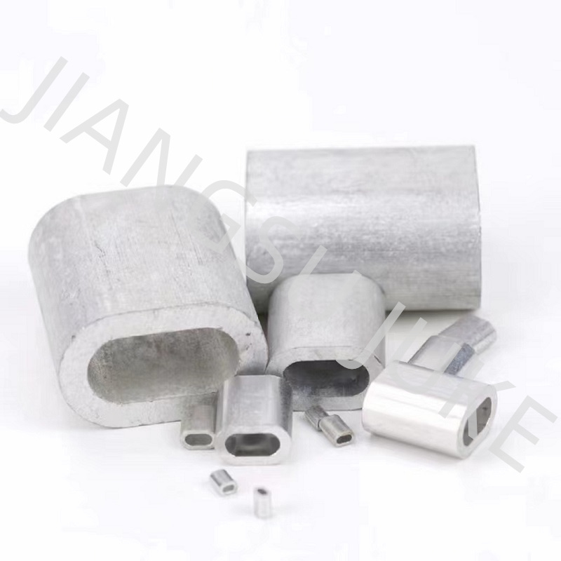 Aluminium Sleeves Ferrules for Wire Rope Size: Different size available. Application:The usage of ferrules is fastening the steel wire ropes for lifting. Stainless ferrules are used in fields with high demand for resistance to corrosion and designees. long term use in salt water, use in nuclear power plants, architecture etc. Our products are mainly used for steel wire rope and as equipment of slings and so on. Juke Metal products Co.,LTD stocks Wire Rope Oval Aluminum Ferrule,Double Ferrule Wire Rope,Anti-rust Glass Fence,Steel Round Bar,Shackle, Turnbuckle, Wire rope clips, Sleeves, Thimble, Link Chain, Hooks, Eye Bolt, Steel Wire Ropes, Sheaves, Plate, etc.