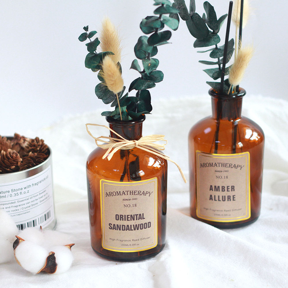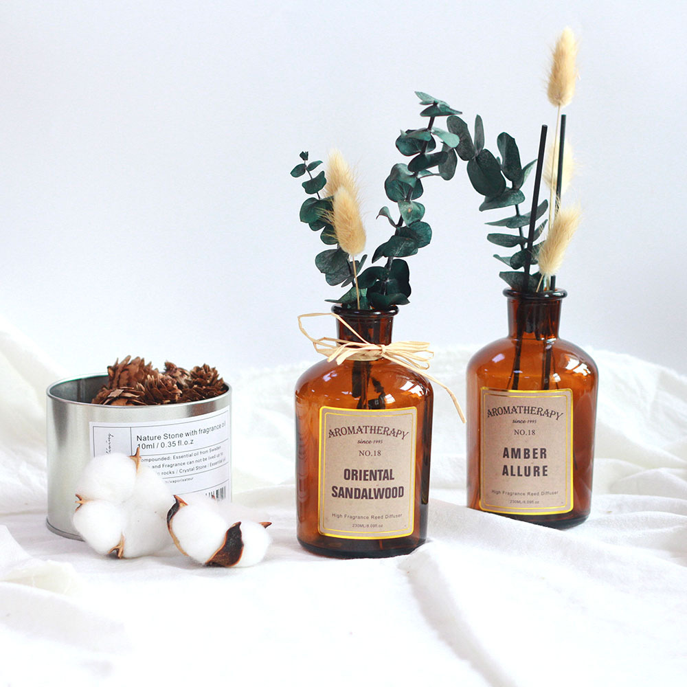 Products Description Style TT0176 Name 230ml brown bottle reed diffuser with eucalyptus and lagurus ovatus in tube Jar material Glass bottle…