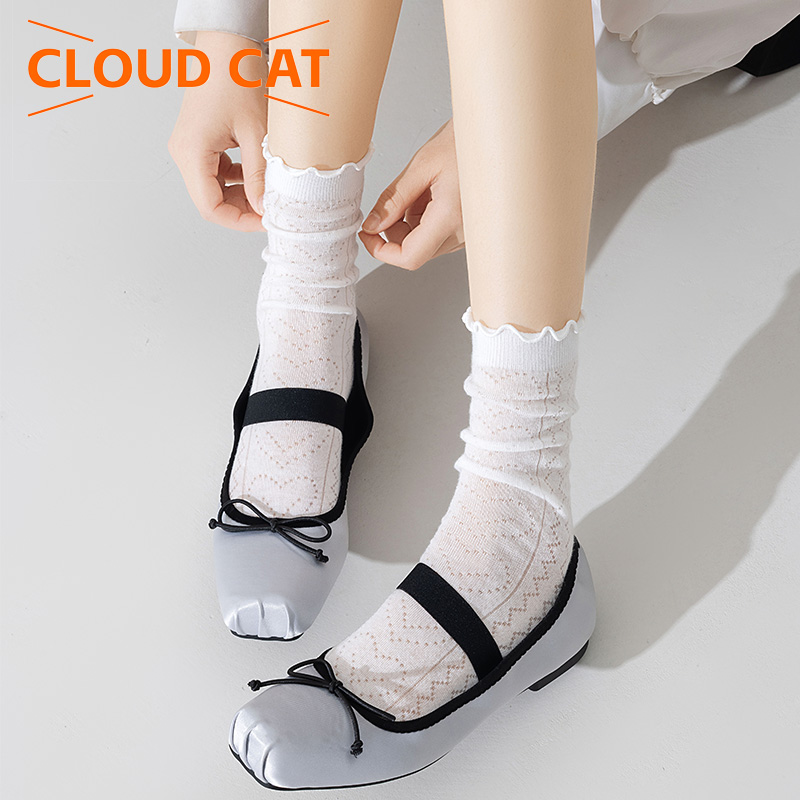 Cloud Cat brings you the women's lace-trimmed mesh mid-calf socks 3-piece set, ideal for embracing the JK style and adding a feminine touch to your daily outfits. Crafted from 75% cotton, 22% polyester fiber, and 3% spandex, these socks offer exceptional breathability, softness, and durability. The intricate mesh design and lace trim at the cuff create a stylish, sleeveless-like appearance, making them a standout choice for spring and summer. Available in colors like black, light blue, light purple, pink, apricot, and white, these socks easily match with various shoes, from Mary Janes to casual sneakers. The one-size-fits-all design ensures a snug fit for different foot shapes, while the breathable mesh keeps your feet cool and comfortable throughout the day. Packaged as a 3-piece set, you have multiple options to rotate through your looks. Whether you’re going for a JK-inspired outfit, a casual daily look, or a feminine aesthetic, these mid-calf socks deliver both style and functi…