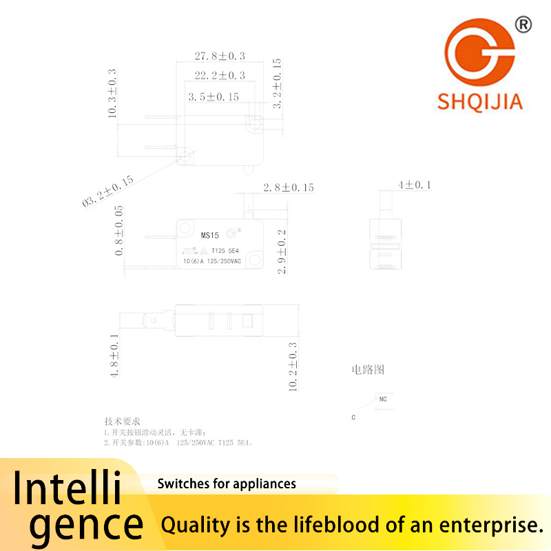 The MS15-3A3 is a standard type of microswitch with wide applications. It is suitable for various small-power AC and DC power tools and garden tools, such as electric nail guns, electric spray guns, lawn mowers, hedge trimmers (also known as hedges shears or fence shears), etc. This microswitch is designed to provide reliable on-off control in demanding environments. Its compact and robust construction ensures durability and long-lasting performance, even under the rigorous use typical of power and garden tools. Whether it's triggering the operation of an electric nail gun, regulating the spray of an electric spray gun, or controlling the blades of a lawn mower or hedge trimmer, the MS15-3A3 delivers consistent and precise functionality. Safety is a key feature, as the product is certified by UL, TUV, KC, and CQC. The UL certification technical parameters include 16 (14) A 125/250VAC T125 5E4, 10 (6) A 125/250VAC T125 5E4, and 5 (3) A 125/250VAC T125 5E4. These certifications and p…