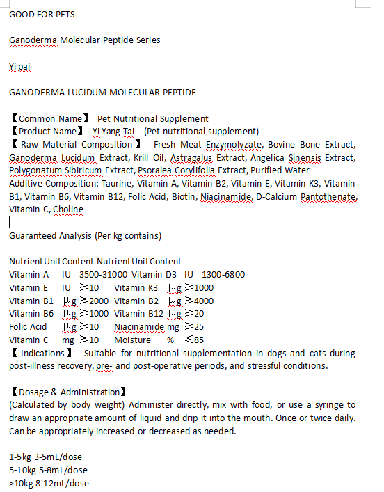 Nutritional Supplements for Depression in Dogs and Cats - Professional Mood Support As a leading provider of Veterinary supplements and Natural Pet Supplement, Henan Yipai Biotechnology launches a targeted solution for canine and feline depression. Rooted in TCM (Traditional Chinese Medicine) wisdom and advanced biotechnology, our Pet Ganoderma Nutritional Supplement is designed to regulate pets’ mood, alleviate anxiety-related behaviors, and restore mental balance—backed by 2 invention patents, 5 utility model patents, and ISO 9001:2015/FDA certifications. Unlike generic calming products, our formula integrates Reishi Mushroom for Pets (a key mood-modulating ingredient) with herbal extracts and enzymolyzed nutrients, addressing both the emotional and physical causes of pet depression. Suitable for B2B partners including veterinary clinics, pet product distributors, and retail chains, we offer flexible supply options (small-batch orders, drop shipping) and 24-month product warranty.…