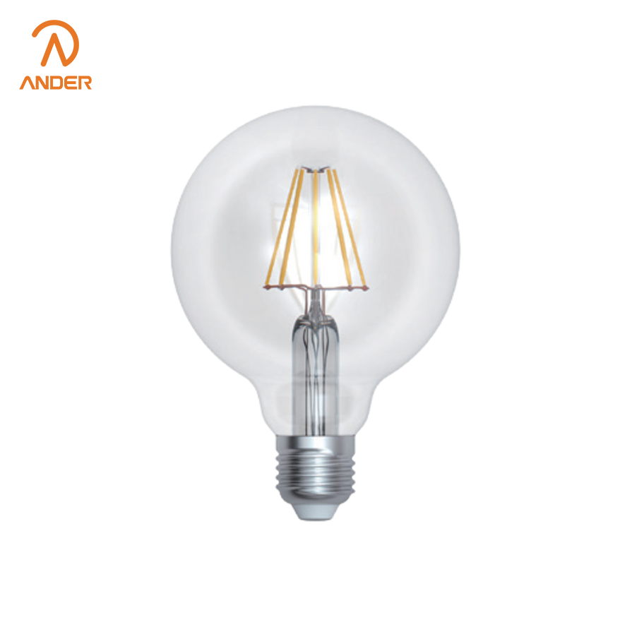 This G95-F-l transparent filament bulb features an exquisite and compact design with dimensions of 95x140mm. It is compatible with E27/E26/B22 lamp caps and is easy to install. It is available in multiple power options of 4W, 6W, 8W and 10W, corresponding to brightness levels of 470, 806, 1055 and 1521 lumens, which can meet the lighting needs of different Spaces. It features multi-color temperature adjustment of 2700K/3000K/4000K/6500K, allowing you to switch between warm and cool light effects according to the scene. It has an energy efficiency grade of A++, is energy-saving and power-saving, and has a service life of up to 20,000 hours, making it highly durable. Supports full dimming function, easily creating a warm or bright atmosphere. At the same time, it is mercury-free, environmentally friendly and safe. Whether it's home decoration, a coffee shop or a retro-style store, it can become a lighting choice that combines decoration and practicality thanks to its unique filament desi…