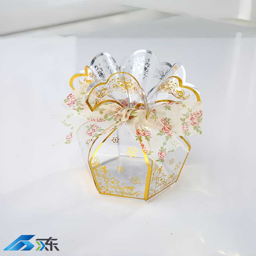 This European court-style PET gift box, with high-transparency PET material as the carrier, integrates golden patterns and lace elements in its design, presenting a strong European court-style charm overall. The golden patterns on the box body are made with gilding technology, which is luxurious in texture and not easy to fade. The petal-shaped design on the edge adds a touch of romance and refinement. Paired with a ribbon bow featuring floral patterns, the gift box exudes a strong sense of ceremony. Its material is tough and durable, with excellent shock and pressure resistance. It can provide all-round protection for the gifts inside (such as chocolates, handmade soaps, jewelry, etc.). Even if they encounter jolts during transportation, it can effectively prevent the gifts from being damaged. The high transparency feature makes the details of the gift clearly visible, meeting the recipient's expectations. It is suitable for wedding souvenirs, festival gifts, high-end brand retail…